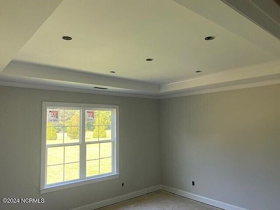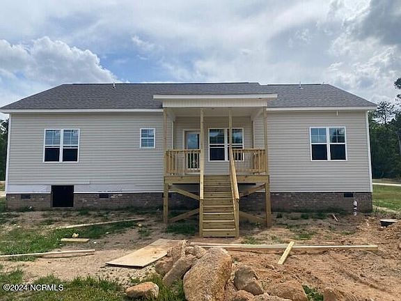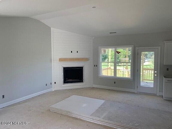 New construction: Open floor plan. 3BR/2BR 1558 SF with 2 car garage. Family room with vaulted ceilings and fireplace. Kitchen island with granite countertops, tile backsplash, custom cabinets, and stainless steel appliances. Master bedroom with trey ceilings and walk-in closet. Master bath has ceramic tile shower with fiberglass pan, garden tub, and double-sink vanity with granite countertops. Hall bath has fiberglass tub/shower combo and single sink vanity with granite countertop. Smooth painted 9-ft ceilings throughout home. LVP flooring in foyer, family room, kitchen, and dining area. Carpet in all bedrooms. LVP in laundry room and baths. White vinyl low-e single hung windows. Duke Progress Energy, well water and septic on site. County taxes only. Home is being built in reverse of Rendering. Seller will pay $3,000 of Buyer's closing costs when closing with Seller's preferred attorney