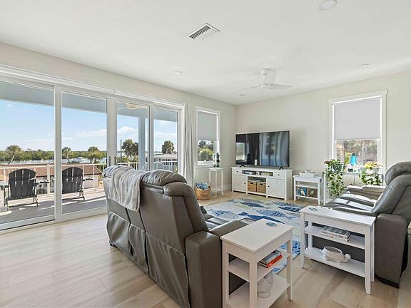 Built in 2022 to FEMA standards, this custom coastal home blends luxury, resilience, and thoughtful design. Hurricane-impact windows and doors are installed throughout. The lower level features concrete block construction and is pre-wired for a Generac generator—providing peace of mind in any season. Inside, enjoy premium finishes including KraftMaid maple cabinetry, hands-free faucets, and a custom epoxy “beachscape” countertop created by local Englewood artist Larry Anderson. A pre-built elevator shaft is ready for future installation. The ground level includes approximately 800 sq ft of finished under-air space with a bedroom and full bathroom—perfect for guests or multigenerational living. Step outside to a heated pool/spa/jacuzzi combo with wrap-around seating, ideal for relaxing or entertaining. A rooftop observation deck offers breathtaking 360° views of Lemon Bay and the Gulf of Mexico. The spacious primary suite features an oversized custom shower. Annual insurance is attractively low at approximately $3,000.