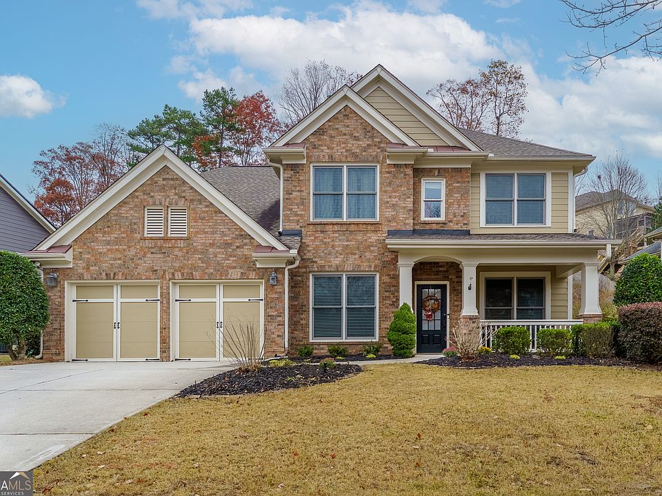 Charming home in one of the most family-friendly, award-winning neighborhoods North Georgia has to offer! The welcome begins on the front porch and extends throughout the entire house and back yard. Perfect for entertaining, the open kitchen and family room offers plenty of space for family and friends. Step into the beautiful sunroom/back porch off the kitchen area where you can relax year round no matter what the weather outside. Main level primary bed and spa-like bath, provides a true retreat after a hard day of work and school. Four additional bedrooms, two full bathrooms, a large flex space area that could be used as a game room, playroom, reading area or workout space finishes out the second level. Award winning schools, fun family friendly neighborhood activities for all ages, cooridanated throughout the year, swimming pools, pickleball courts, tennis courts, sidewalks, parks, playgrounds, a library and the perfect house all in one location! What more could you ask for? Come see it today and get ready to spend the holidays in your new home!