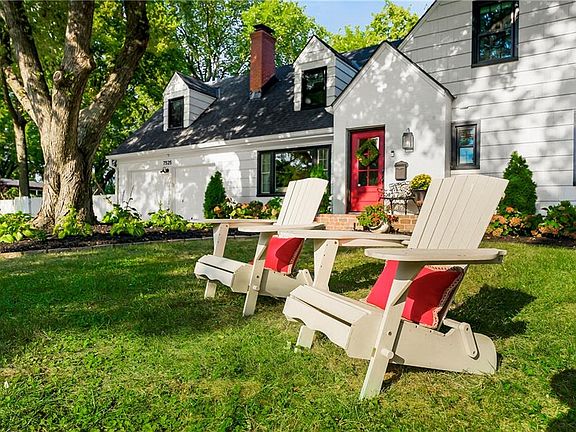 Welcome Home to 7525 Fontana, a thoughtfully expanded and updated Cape Cod nestled on a large half-acre lot in Prairie Village. As you enter you'll find the formal living with a fireplace and large picture window overlooking the rolling green lawn. Pass through to the great room where you'll find the true heart of the home and a perfect layout for entertaining. The tastefully updated chef's kitchen with white cabinets, a large island with marble countertops, a 6-burner range & a new stainless steel refrigerator. A generously sized dining area featuring classic black built-ins with glass fronted cabinets, a wet-bar & wine fridge. Rounding out the common area is the family room with 12 ft ceilings & brick fireplace. Skylights, windows and glass doors throughout allow natural light to fill the space and create a seamless flow from the indoor to outdoor living spaces. The backyard oasis has been lovingly created and significantly enhances the main living area of the home. Step outside & enter the beautifully landscaped backyard with multiple entertaining zones: two decks, patio & a wood-burning fireplace, perfect for crisp fall evenings! You'll also find a stunning water feature off the dining deck. Plus plenty of room left to add gardens or a pool. The 1st floor primary bedroom & just added primary bath, featuring a large walk in shower and deep soaking tub, create a little retreat from the outside world. So much attention to detail in this sparkling new ensuite. Upstairs you'll find two large bedrooms, with a third large room allowing flexibility to use the space as a 4th bedroom, a home office or whatever works for you! Downstairs is  partially finished with new carpet. The two original bathrooms have been completely updated. Roof is new within last few years according to the previous listing. Laundry is conveniently located off the garage on the main level.