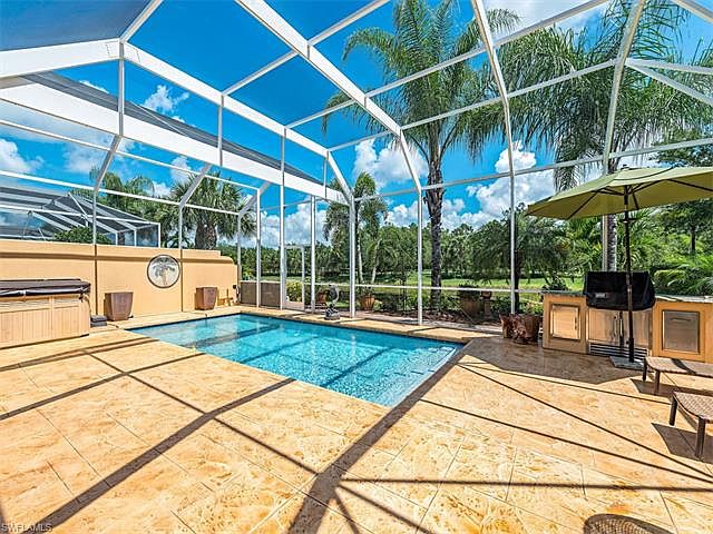 ****** CHECK OUT OUR 3D VIRTUAL TOUR!!! ****** Spectacular premium corner lot Oakmont pool home with poured concrete construction. Home abounds with upgrades that include: Electric storm shutters, custom coach lights, custom lighting throughout, custom built-in cabinets, custom kitchen cabinets, granite counter-tops in kitchen, baths, and laundry room, stainless steel appliances, custom wall unit in great room, custom upgraded porcelain tile throughout, outdoor Bar-B-Q kitchen, screened electric/solar heated pool with custom surround, hot tub, custom brick patio's, hook-up for 7 circuit generator, custom cabinets in garage. This meticulously kept residence in move-in condition! VeronaWalk offer: 24/7 guarded gated entry, over 20 miles hiking/walking trails, lighted tennis, pickelball, bocce ball, basketball courts, resort-sized community pool, lap pool and 24/7 fitness center. The Town Center features: bank, post office, hair salon, travel agency, restaurant, library, gas station, car wash, ballroom, card rooms, computer center, performing arts center, and a full time activities director. VeronaWalk was awarded "Community of the year" for the State of Florida in 2014.