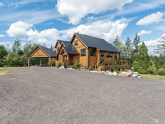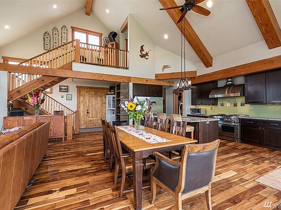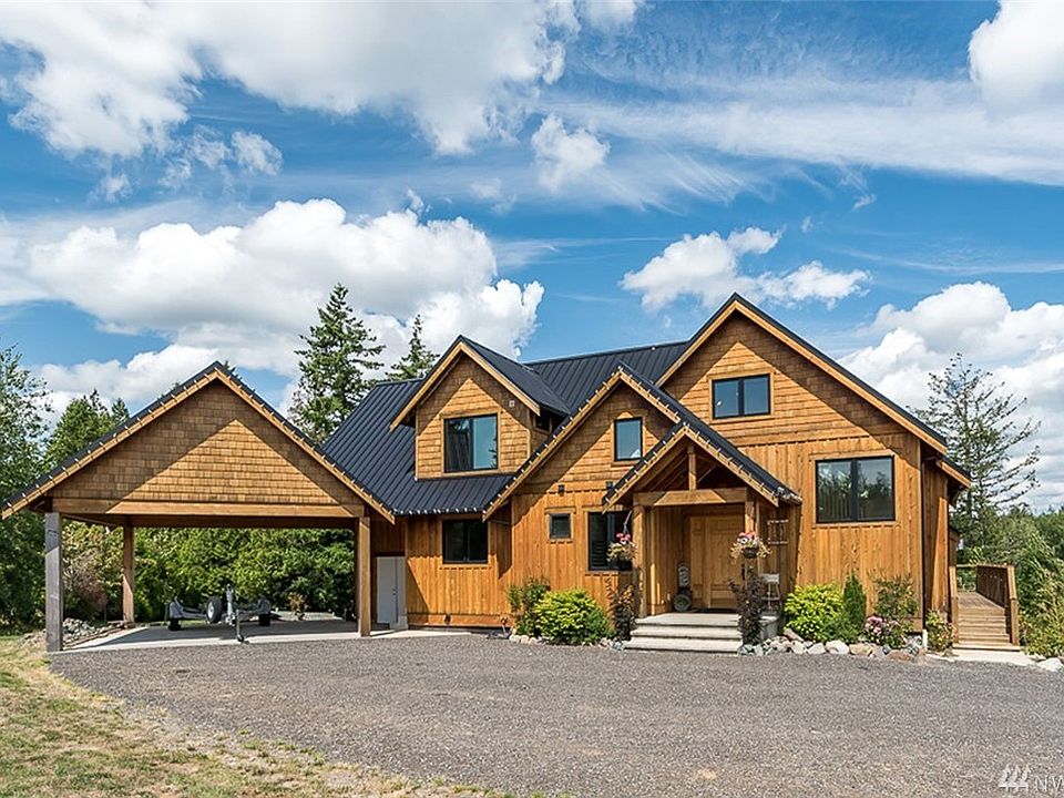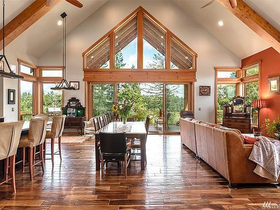 Lodge Style living in this gorgeous cedar sided custom home with vaulted great room & open floor plan on shy 10 acres. Douglas Fir exposed beamwork frames the chef's kitchen, featuring white Alaska granite countertops, solid wood soft close cabinetry, commercial fridge/freezer & range. 11 zone radiant heat under 3/4" Acacia Teak hardwood floors. Metal roof, solar panels, expansive deck, natural stone fireplace, custom Lowen windows & Italian bath tile. Large shop with 2 bedroom ADU upstairs.