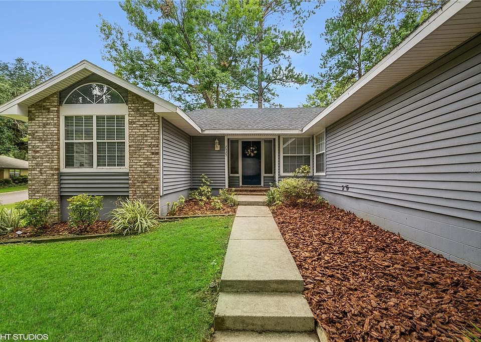 This beautifully renovated home is perched on a hill-top, spacious corner lot in one of Gainesville’s most convenient neighborhoods. Boasting 4 large bedrooms, 2 beautifully updated bathrooms, no carpet, a gut-renovated kitchen with new cabinets, quartz countertops tops, and stainless appliances, and a huge living room with vaulted ceilings, a designer feature wall, and wood burning fireplace. The owner's suite features walk-in closets and an en-suite bath with twin rainfalls shower heads and a custom vanity. This home is zoned for some of Gainesville’s best schools, is walking distance to restaurants, less than a mile to a Shand’s ER, 1.5 miles to Santa Fe college, and less than 2 miles to I-75.
