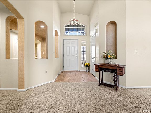 Welcome to your Colorado lake house with stunning mountain views! Could it get any better? Yes, it can, because this is also a ranch with a finished basement and a split 3 car garage with an amazing workspace area inside the 1/3 section. On the main level, you walk in to mountain views out the windows in front of the dining area with bedrooms to your right and the kitchen with the living room to your left. Living room walks out to the covered patio area that is perfect for spending time tucked away from the elements allowing you to grill all year round without getting snowed on and also have some privacy sipping your morning coffee admiring the mountain views in front of you. The meticulously cared for lawn blossoms in the springtime, the owners have lovingly taken care of the grass and gorgeous landscaping that has truly been a showcase for all neighbors when the flowers bloom. A walking trail is directly outside the fence and it leads directly to the gorgeous amenity of Crystal Lake mere steps away and the 2 parks perfect for the whole family. Back inside, the primary bedroom also has a walkout to the covered patio and a separate nook inside the bedroom with a fireplace ideal for those cozy evenings tucked into a chair with a good book. In the finished basement, you will find ample space with a large family room, the 4th bedroom, a bonus room that would easily be converted into a 5th bedroom, a built in bar, full bathroom, and a spacious unfinished room that works fantastically for extra storage. New washer and dryer included with the sale. This gem of a home has it all, book your showing today!