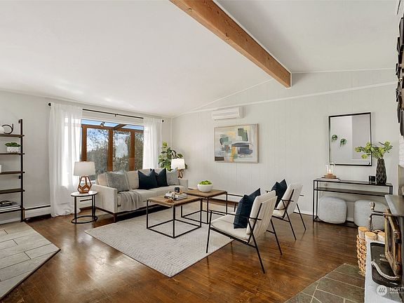 Beautifully updated Mid-Century view home in Earlington on massive 1.23 acre property. Flooded with natural light, enjoy views of Mt. Rainier and the Cascades from throughout the main floor. Thoughtful design touches blend new quartz counters and tile work w/ original stone entryway, brick fireplace, and refinished hardwoods. Dining opens to sunroom, lower level features full second kitchen w/ separate entrance plus two additional bedrooms. New septic system, new roof and new updates throughout the main level. 1-car garage, greenhouse, horse stables & huge lot w/ three separate tax parcels has expansive space for recreation, gardening, outdoor projects, and more. Just minutes from shopping & restaurants in the Landing & Downtown Renton.