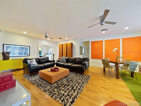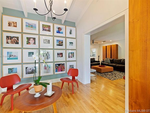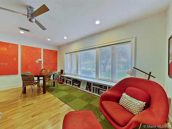 High Pines Charmer! Inviting 3 bdrm/2 bath home + office. Bright, cheerful formal foyer entry. Spacious living rm w/ custom bookshelves & lots of natural light. Formal dining rm w/ exposed wood-beam ceiling opens to a true cook s kitchen w/ gas range, steam oven & extra-deep granite countertops. Split bedroom floor plan. Master suite has adjacent sitting room. Full office w/ custom cabinetry, dedicated A/C, separate entrance. Indoor laundry rm, attached new-construction outdoor storage rm. Wood flooring, impact windows/doors throughout. Lush, fenced backyard with large heated pool, covered porch, avocado tree, herb garden. Whole-home natural gas generator. Architectural paver driveway. Easy walk to South Miami shops and restaurants, easy drive to county s best public and private schools.