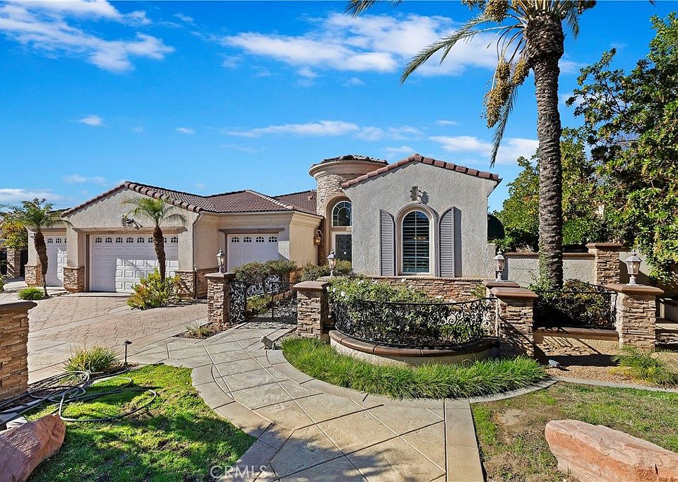 important to note is that you will be residing in a .Coveted school district as education excellencee awaits your next generation........Upgrades and extras galore: 4th bedroom and bath is right side of front door as you walk in..... Awnings for windows...Wood shutters for all windows and all french doors throughout except the family room....Lots of built-in cabinets to show off your collections....Remote controlled fireplaces, one in family room and the other in Master bedroom keep you cozy and warm in cold months....Almost new painting.....Pet friendly flooring with tiles everywhere including master bedroom and the rest bedrooms with laminate wood floor...Huge master bedroom with double closets and a spacious bathroom with a jacuzzi tub and also with his and her separate shower.....Gourmet kitchen has other notable features like built-in desk and built-in bar area complete with a sink ....Indoor laundry room with a utility sink has plenty cabinets and comes with a 2nd refrigerator ....Again, relax in your back yard oasis, professionally landscaped with lots of pavers, planters, that adorns 2 separate Gazebos built with tile roofs, top quality granite counter, Built-in Bar Be Que, pool and spa....Wrought iron gate is perfect for a large RV/Boat or extra cars...4 car Garage is spacious and well designed with lots of cabinets and Epoxy coated floor, and it also has the NO-noise auto garage door opener and auto light....The neighborhood is lined with semi custom homes, and takes only a minute to Everything like School, Restaurants, shopping, Gym, and so on.......High end security system and security lights outside.....Sewer connected...NO HOA and regular tax area!!