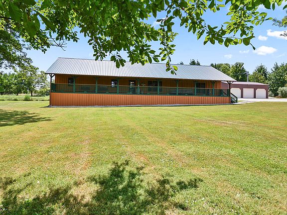 Welcome to your dream home! This beautifully kept all-ranch residence has over 2,600 square feet of thoughtfully designed living space, perfect for both relaxation and entertaining. The spacious open floor plan has large vaulted ceilings creating an airy atmosphere, while the open concept layout seamlessly connects the living areas, making it ideal for gatherings with family and friends. Don't overlook the charm of custom trim and solid wood doors throughout the home, adding a touch of sophistication to every room. With two living rooms, one currently set up as a pool room complete with a pool table, you'll have plenty of space to unwind or entertain guests. The expansive kitchen is a chef's delight, featuring ample cabinets, generous prep space, and stunning granite countertops. The bar area provides additional seating, perfect for casual meals or entertaining. Enjoy the convenience of a spacious walk-in pantry, ensuring you have all the storage you need for your culinary adventures. All three bedrooms are generously sized, each with nice-sized closets. The master suite is a true retreat, featuring an en suite bath with a large single vanity, tiled floors, and a tub/shower combo for your relaxation. The good-sized laundry room offers plenty of storage space, making chores a breeze. An attached shop area with an exterior door provides additional functionality, whether for hobbies or extra storage. Enjoy the outdoors on the large covered front and back porches, as well as a patio area perfect for summer barbecues and gatherings. The property includes a detached 3-car garage equipped with concrete flooring and power, providing ample space for vehicles and projects. There is also a small 14X20 garden shed with a concrete floor and double doors to park a mower. This all-ranch home combines elegance, functionality, and comfort, making it the perfect place to create lasting memories. Don't miss the opportunity to make this stunning property your own!