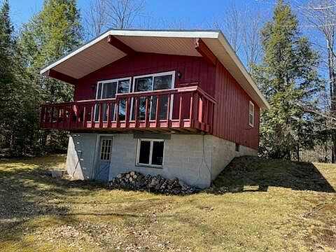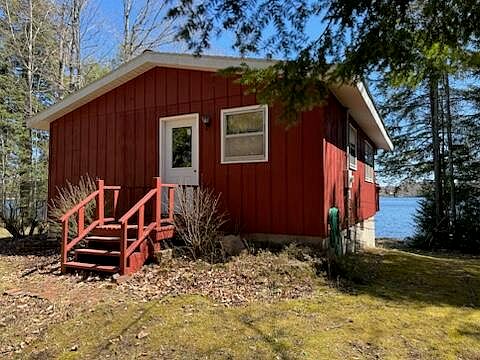 Cute Cottage on 210' of East Lake Frontage with wooded lot for privacy and a full walkout basement. The cabin is finished on upper level with open kitchen living room with patio doors to a raised deck. Enjoy your coffee while you start your day with a different sunrise while you watch the wildlife. One bedroom and full bath up, then bring your ideas to finish off the lower walk out basement as you choose. East lake is an all sports lake that is 122 ac in size between Curtis and Newberry with great snowmobiling too! There is a new well and plenty of room to add on or put a garage if you choose. Gentle slope to waters edge with Electric baseboard heating and a woodstove in basement. A great UP Getaway for the trail riders & a gas station/convenience store in walking distance! Summer ready! East lake is all a private road that owners share in plowing and grading. Handled all by the East lake Organization committee and a nice nieghborhood.