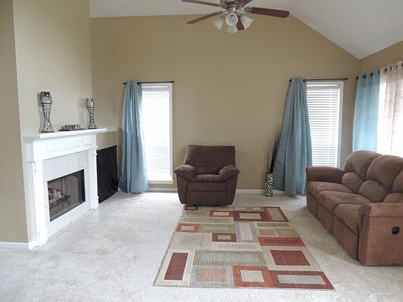 Nice 3 Bedrooms 2 Bath, 11' high ceilings in the kitchen living & dining areas, custom built entertainment shelving, Gas log fireplace, Formal Dining room has Huge Windows overlooking beautiful backyard & custom built deck. Kitchen features pantry, lots of storage, tile counters & updated whirlpool Stainless Steel Appliances which include side by side refrigerator, smooth top electric range, microwave range hood & dishwasher. Master Bedroom has trey ceilings, walk in closet, spacious master bathroom with double split vanities, Garden tub, & separate shower with bench seating.