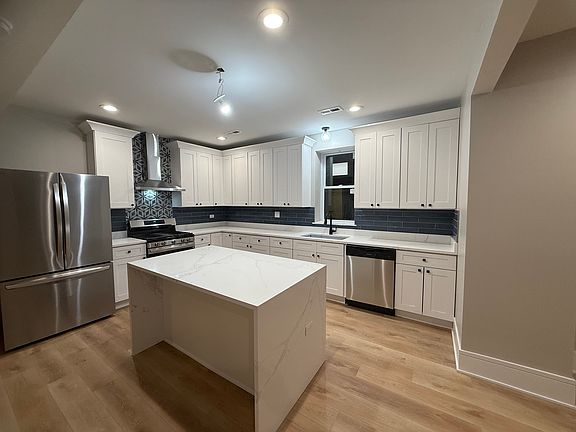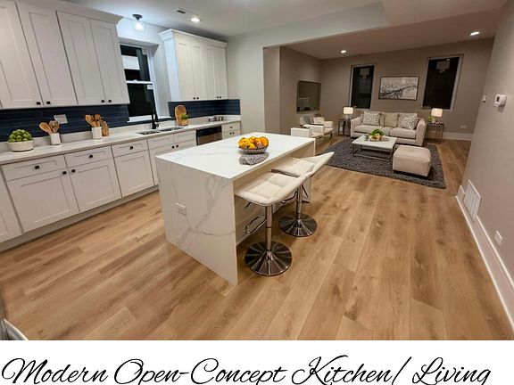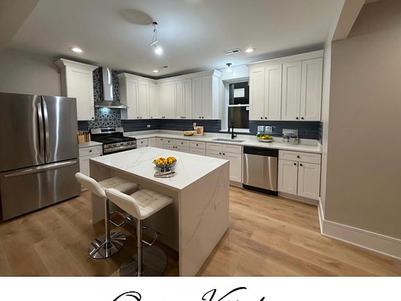 I am proud to present this absolutely gorgeous 3-bedroom, 1-bathroom property, which includes a private porch perfect for relaxation. This fully renovated apartment features a huge backyard and a detached garage. Enjoy an open-concept gourmet kitchen and a living room with vinyl hardwood floors throughout and an elegant, large bathroom. The property is equipped with a central heating and cooling system and in-unit laundry.