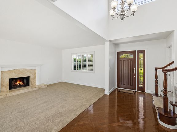 Gorgeous detached house with 5 bedrooms and 3 full bathrooms directly adjacent to open space preserve. Extraordinary 180 degree canyon views. Fantastic, quiet neighborhood with great schools. Home is in turn-key condition with travertine, hardwood floors, brand new carpet, plantation shutters, and more. Features A/C, fireplace, family room addition with multiple large windows, and modern kitchen with newer stainless steel appliances. One bedroom and full bathroom downstairs, the primary bedroom suite and three additional bedrooms are upstairs. Private rear yard has in-ground spa and built-in BBQ. Spacious garage has ample built-in storage and workbench. This is a very rare gem of a property. Must be able to show at least 2.5x monthly rent. No co-signers. 11-month lease. Renter is responsible for water, gas, and electric.