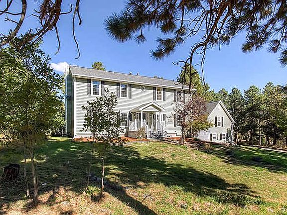 This home makes a statement from the first glance, you'll love this two story modern farmhouse in the much desired Sage Port area of Larkspur. This home is near the elementary school, has easy access to 1-25 and is close to the Jack Nicklaus designed, PGA golf course of Bear Dance. On an acre of gently rolling landscape, there's a playhouse in the trees and a large inviting front yard. Once you enter this lovely home you will find hardwood floors, a main level office, formal dining room, and a large great room with fireplace. The great room extends to the eat in kitchen complete with granite countertops, pantry, stainless appliances and a coffee bar. Do you need to have a larger "work from home" office area? Home schooling? Or have you been looking to expand your at home fitness program? The main level bonus room with fireplace and great light is only limited by your imagination. Follow the beautiful staircase up and find the primary bedroom with a vaulted ceiling and a cozy retreat. There is also a large walk in closet and the spacious ensuite bathroom. It is well appointed with a large tub, double vanities, and a separate water closet and shower. Upstairs you will find the laundry and two more bedrooms sharing a jack and jill bath and shower. Amazing views abound from the upper level. Back on the main level you will find a panoramic deck that almost spans the width of the home! The two sets of french doors from the great room as well as the slider from the kitchen, welcome your guests to the Pergola's cozy seating area, and other comfortable gathering areas. This deck is an entertainer's delight. There is a gas line ready for your outdoor kitchen and steps leading to the fenced backyard. On the lowest level of this home you will find two more bedrooms, a media gaming room, a full bath and walkout to the concrete patio with a new therapeutic hot tub to soak away your cares. There is so much more to this home than meets the eye, come see for yourself.