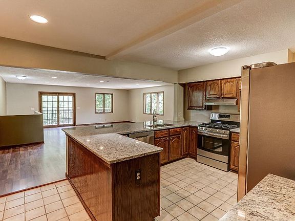 Charming 5BR / 2BA newly remodeled 1 1/2 story is move-in ready! Open great room - awesome for entertaining! Wood burning fireplace, granite, new carpet, hardwood floors, SS appliances, Lower Level bar, walk-out in Lower level, and large deck overlooking large mature backyard!