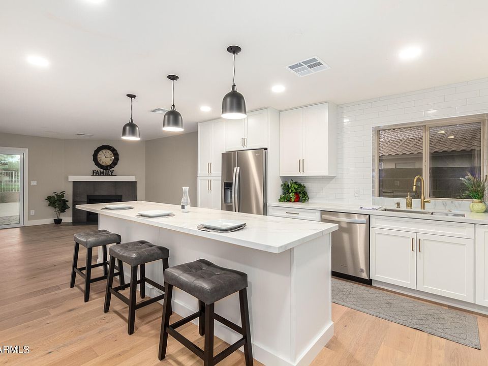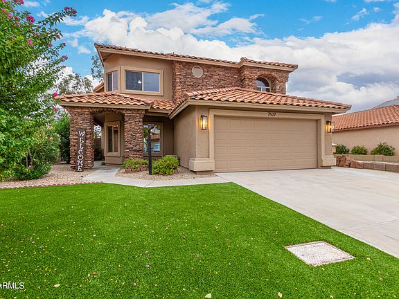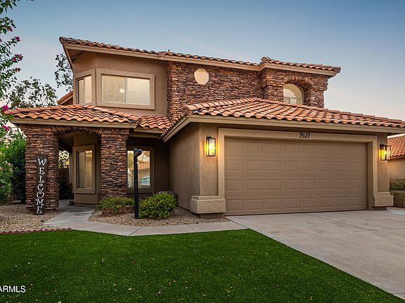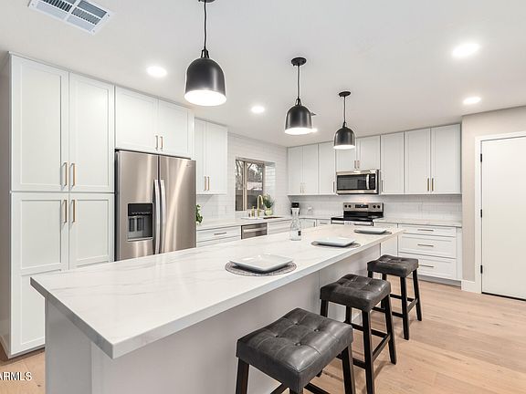 Incredible Entertainers delight sitting on a beautiful lot on the Arrowhead country club golf course! * Complete remodel! Large 4 bed 2.5 bath * Forever green turf + stacked stone veneer greet you as you arrive * New in 2024: Custom dual pane windows * Real wood plank flooring * Custom rail staircase * Accordion style custom made back door * New entertainers bar w/fridge * Custom LED canned lighting throughout * Cavernous kitchen with one of the largest custom made islands slabbed with gorgeous thick quartz * Pendant lighting * Fresh int paint * Dual TRANE A/C's & air handlers 2015 * WIFI phone app Ecobee thermos * New elec fixtures throughout * All new Whirlpool stainless appl packge * Oversized cove base thruout * Gold Plumb fixt thruout * Incredible master shower looking over the lush green golf course * Home is perfectly set up for the Entertainer! HEATED POOL! Dual walkout French doors to the balcony from Master & secondary bedroom * All new Custom cabinetry throughout * Brand new water heater * HUGE master walkin closet with build-ins * All appliances including Elecrolux washer/dryer combo convey * So much more. This home must be seen to be believed!