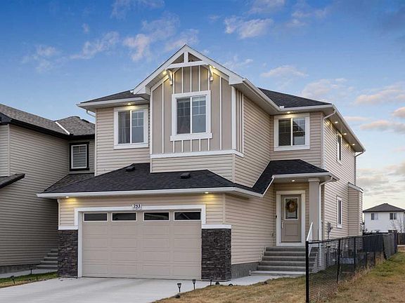 Beautiful 4-Bedroom Family Home in Sought-After Edgefield | Corner Lot Next to School | 9 Ft Ceilings | Bright Open Floor Plan | Modern Kitchen | Quartz Countertops | Stainless Steel Appliances | Mudroom | Main Level Office/Flex Room | Spacious Family Room | Primary En-suite with Jacuzzi Tub | Upper-Level Laundry | Separate Basement Entrance | Stunning Views | Large Backyard | Double Attached Garage | Prime Location Near Amenities. Welcome to your stunning 4-bedroom, 2.5-bathroom family home perfectly situated on a quiet corner lot in the desirable community of Edgefield. Ideally located next to a school, you can enjoy the convenience of watching your children play from the comfort of your own home. Step inside to discover a bright and spacious main floor with 9-foot ceilings and an open-concept layout that blends comfort and functionality. The modern kitchen features quartz countertops, stainless steel appliances, and ample cabinet space — perfect for family dinners and entertaining guests. The mudroom offers everyday practicality, while the main level office or flex room provides versatility for remote work, hobbies, or a play area. A stylish powder room completes the main level. Upstairs, you’ll find four generous bedrooms and two full bathrooms, including a luxurious primary suite with a spa-inspired ensuite featuring a large jacuzzi tub, perfect for relaxation after a long day. The upper-level family room provides an additional gathering space for movie nights or quiet evenings, while the convenient laundry area is located near all bedrooms for added ease. The unfinished basement with a private side entrance offers endless potential — whether you envision a future suite, recreation area, or home gym. Enjoy breathtaking views of the Northern Lights, morning sunrises, and evening sunsets from the comfort of every room. The large backyard provides plenty of space for children, pets, and outdoor entertaining. Located just a five-minute walk from pharmacies, gyms, supermarkets, dental offices, and clinics, this home offers the perfect balance of convenience, tranquility, and family living. Don’t miss this rare opportunity to own a beautiful family home in one of Strathmore’s most sought-after communities — book your private showing today!