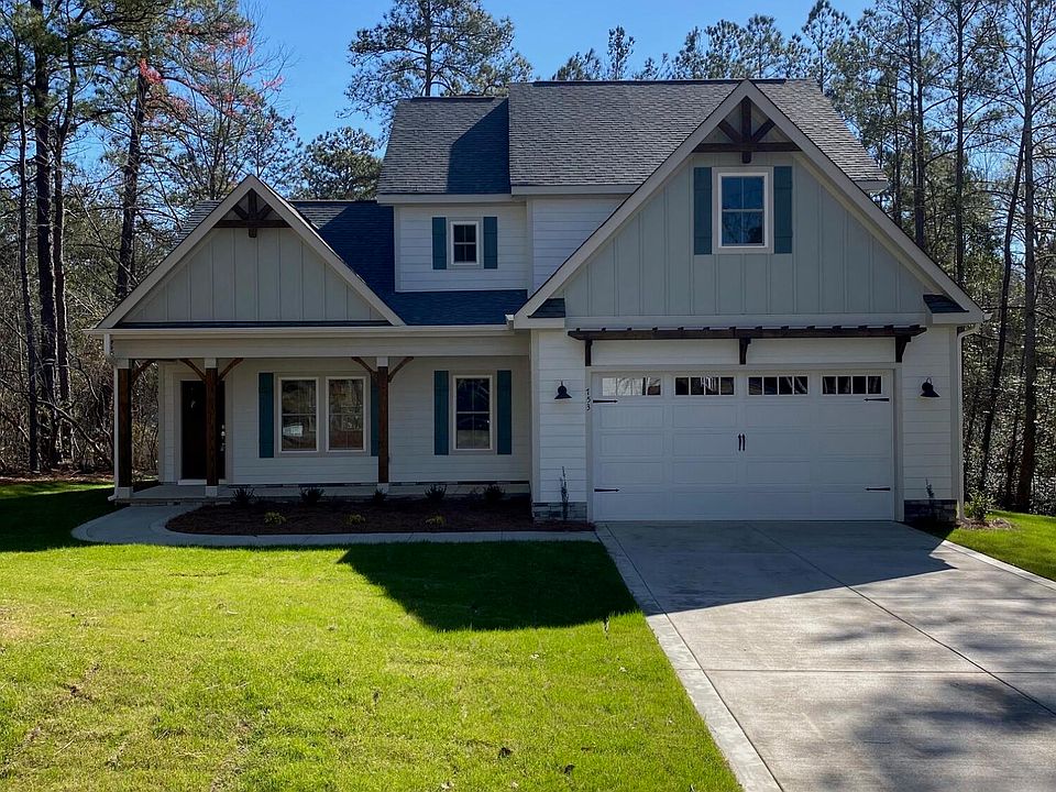 The Devon plan presented by The Ascot Corporation offers over 2800 sqft of well appointed custom finishes. Exterior includes two car garage, hardie plank siding, energy efficient double paned windows, and covered front and back porches. As you enter the front door you are greeted with LVP flooring throughout the main living spaces. The downstairs includes an open floor plan from Family room, Kitchen, and Dining room. Kitchen includes ample storage space, granite countertops, brushed nickel hardware, ceramic tile backsplash. First floor Owner's suite with spacious walk in closet and well appointed master bath. Three additional bedrooms upstairs with three additional rooms! The Devon plan includes Loft, Bonus Room and Flex area. The Woodlake North Side Golf course is currently under construction and work is currently taking place to return water to Lake Surf.Short commute to Fort Bragg, Southern Pines, Pinehurst, and First Health Hospital. Estimated completion date: 11/29/22