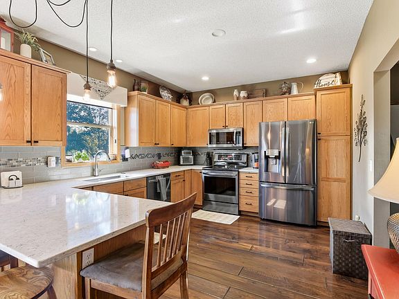 Stately Two-story 4 Bedroom home with Covered Front Porch and Many Updates! The exterior was refreshed with a New Roof, Siding, and Garage Doors (2019). A 3-Car Garage plus a 26x12 Workshop addition provides excellent storage and hobby space. Inside, the main level features engineered wood floors and a Gas Fireplace in the Living Room.