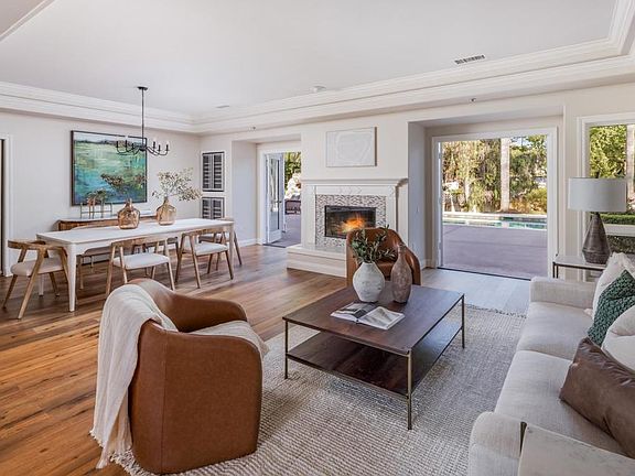 Nestled on a quiet cul-de-sac in the highly sought-after community of Olivenhain, this stunning estate blends timeless elegance with modern amenities, all surrounded by lush tropical landscaping. The main level lives like a single story, offering four spacious bedrooms and a dedicated office. Expansive formal living and dining rooms feature lots of windows overlooking the resort-style backyard, while the gourmet kitchen with breakfast nook opens to a welcoming family room complete with fireplace and custom built-ins. The second floor offers a private retreat with a large bedroom, full bath, and generous living and dining area, perfect for extended family, guests, or older children seeking their own space. Step outside to your own private paradise. The backyard is designed for entertaining and relaxation, featuring an outdoor kitchen with a barbecue island and pizza oven, a sparkling lap pool, a putting green, and a collection of fruit trees, all framed by tropical greenery. Additional highlights include a spacious three-car garage and a versatile home office. This exceptional residence captures the best of Southern California living in one of North County’s most coveted communities. OPE elementary school, Diegueno middle, and LCC high school. Close to many shopping centers