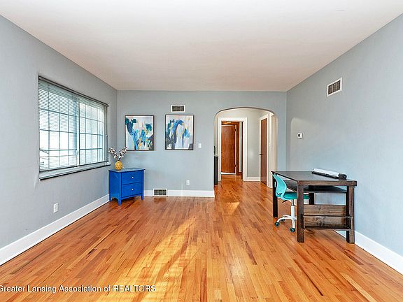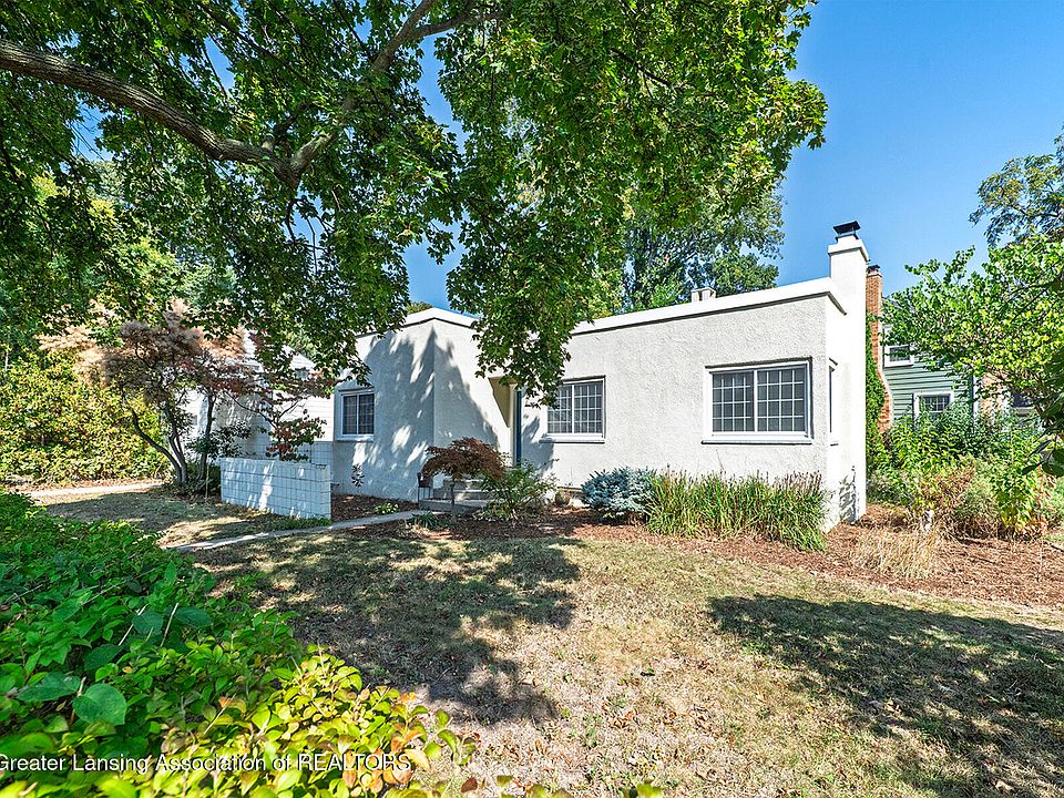 Welcome to 753 Snyder! This classic Art Deco style home features hardwood floors throughout the main floor, an updated kitchen, first floor primary bedroom, three full bathrooms, three bedrooms and a sauna. The kitchen features many updates, including stainless steel appliances, granite countertops, maple cabinets, and glass-tile backsplash. The first-floor primary features a full bathroom with a walk-in shower and a walkout access to the private courtyard. The main floor has two additional large bedrooms and a full bathroom. Finished lower level features the sauna, family room, fireplace, built-in shelves, and full bathroom. Home is situated on a large corner lot close to East Lansing schools, MSU, shops, restaurants and more. Lastly, the home features a detached garage, an attached storage shed, and has been professionally landscaped. Don't miss this opportunity to own a wonderful home in a great neighborhood. Call or text the listing agent for a private tour.