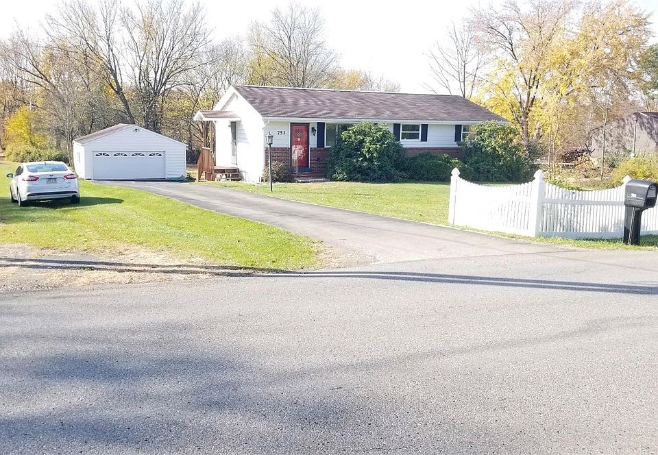 Welcome home to this tastefully remodeled ranch on a beautiful .76 acre lot with two car detached garage. This home is awash with natural light! Enter through the front (with etched storm door) to the living room with coat closet and large window framing the amazing rhododendron. Plaster walls throughout with beautiful designs. The dining area opens to the large covered deck overlooking the huge yard. The kitchen has ample space for that family heirloom buffet. There are three bedrooms and two full baths with the oversized master bath being handicap accessible. There is also room on the main floor for full size laundry hookup. The lower level has a room they used as a family room and a large utility/workshop area.