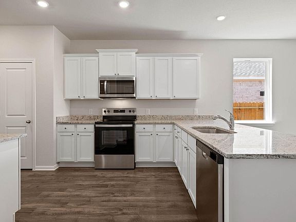 The Montgomery plan by LGI Homes is a large home that features an incredible storage space and three large bedrooms. Designer upgrades and features are also found throughout the home including stainless steel appliances, granite countertops, lush carpet in the bedrooms and energy-efficient technology. The master retreat has an exceptional window that overlooks the backyard, a luxurious en-suite bathroom and a walk-in closet. The spacious bedroom easily accommodates your king-sized bedroom furniture. An exceptional walk-in closet provides plenty of space to keep your wardrobe and accessories organized and out of sight. The attached bathroom is stunning, and features a soaker tub, step-in shower and a spacious vanity.
