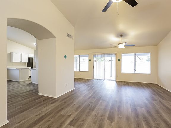 Please note, our homes are available on a first-come, first-serve basis and are not reserved until the holding fee agreement is signed and the holding fee is paid by the primary applicant. This home features Progress Smart Home - Progress Residential's smart home app, which allows you to control the home securely from any of your devices. This home is priced to rent and won't be around for long. Apply now, while the current residents are preparing to move out, or call to arrange a meeting with your local Progress Residential leasing specialist today. Check out this beautiful three-bedroom, two-bathroom rental home in Glendale. This Spanish-style house has 1,808 square feet of space to decorate and host guests. As you pull into the driveway, you'll be in awe of the stunning off-white exterior and attached two-car garage. Upon entering the house, you'll walk right into the foyer that has an open view of the family room, dining room, living room, and kitchen. All these rooms feature dark hardwood flooring, ceiling lights, and plenty of windows. The kitchen has stainless appliances, white countertops, and a breakfast nook. You can relax by the fireplace in the living room on a chilly afternoon. Of course, you can also rest in the spacious master bedroom. The master bathroom features white countertops and cabinets along with rectangular dual sinks. The fenced-in backyard also has a large concrete patio that's partially covered. Schedule a tour today.