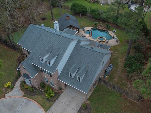 HUGE PRICE REDUCTION !!! Beautiful and rare Kingwood home on over two acres.The back yard has a pool ,spa ,putting green and a fantastic outdoor kitchen. It can be your own private park. View of lake from yard. Wall of windows in the den overlooking the beautiful back yard.Five large bedrooms. Master bath has whirlpool tub, large closet with built-ins.tile floors and double sinks. This is a must see. The over two acre lot extends well past the wrought iron fence to second fence past trees. This is a very private location.