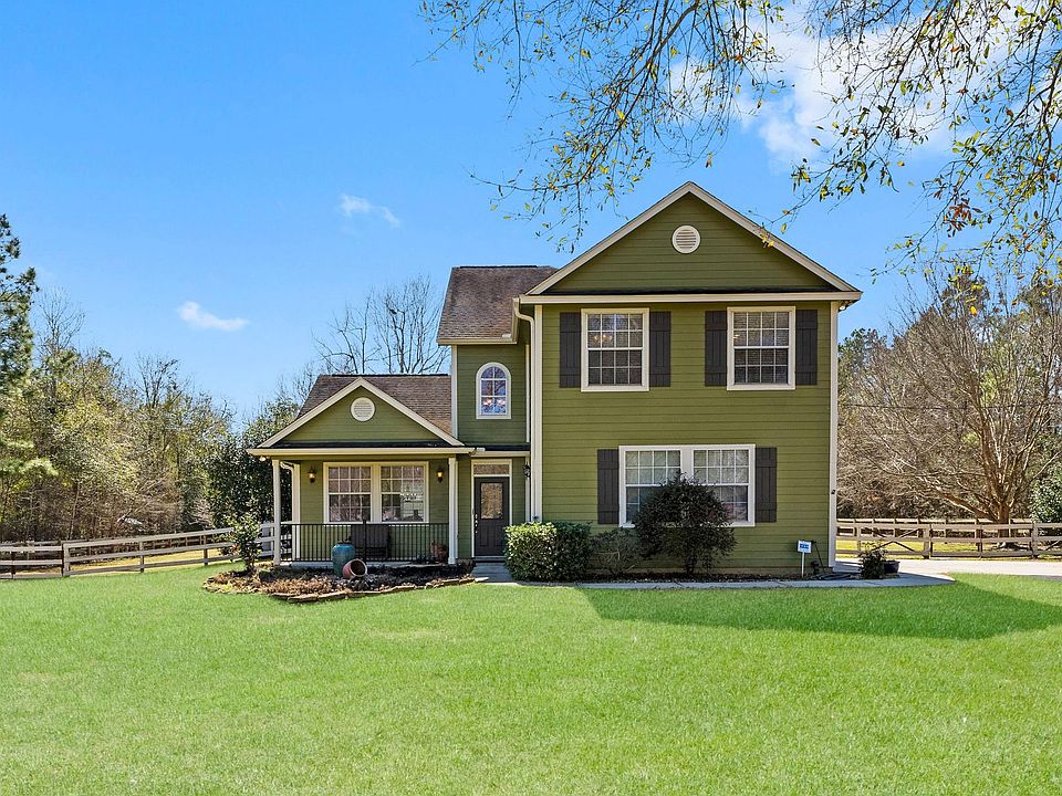 This charming two story home on 1.5 acres in Montgomery Trace has everything you need! Perfect for entertaining with a sparkling pool and large deck plus plenty of yard space for kids and pets. Well designed floor plan with formal living room/study with vaulted ceilings, formal dining room for hosting holiday dinners and the chef's kitchen with stainless appliances is open to the family room with elegant fireplace. All bedrooms are upstairs including the large primary suite which features extra space perfect for a desk or reading chair plus a private screened porch to enjoy the quiet country evenings. Please note the property is in Zone X - the flood map linked to this listing is mapping the property incorrectly.