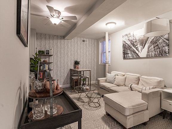 Bright garden apartment in a classic yellow-brick courtyard building. Industrial-chic vibe with painted/exposed ceilings, tall windows, and a roomy living area with a herringbone feature wall-plus space for a dining nook or bar cart. Refreshed kitchen features white cabinetry, subway-tile backsplash, gas range, built-in microwave, double sink, and a handy rolling island. Comfortable bedroom fits a queen; full bath with tub/shower and tile surround. Second bedroom works perfectly as a separate office/den for work-from-home or hobby space. Walk to neighborhood cafes, global dining, groceries, parks, and everyday conveniences. Quick access to CTA buses and the Red Line for an easy downtown commute; bike routes and the lakefront are a short ride away. Gated front yard, easy street parking, and garage space available (optional).