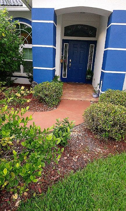 Located only one block from The Legacy Trail for biking and walking/jogging pleasure, this lovely 4 bedroom, 3 full bath home with 3 car garage, tile roof, and heated saltwater pool with jetted underwater benches overlooks a large pond and stately oak tree as well as several palm trees. It has a view of a nature area across the pond. The split floor plan has porcelain and ceramic tile flooring throughout the house, separate living and family rooms, a master suite with walk-in closet, separate shower and tub, and enclosed toilet. The master bedroom, living room, family room, and kitchen nook all open to the private patio with heated pool enclosed by screening. The kitchen and all bathrooms have been updated with new cabinets and granite countertops. The house has large triple pane hurricane resistant sliding pocket doors and triple pane hurricane resistant windows. It also has been re-piped and has a whole-house water purification system with an additional reverse osmosis filter in the kitchen, as well as a whole-house electric surge protection system.