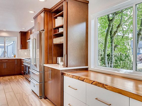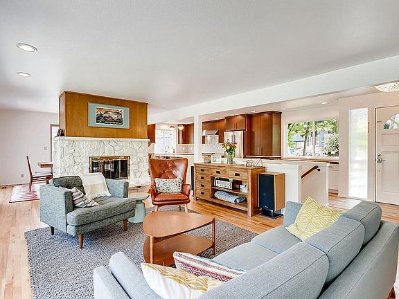 This well-maintained mid-century home is located on a dead-end street in a secluded, private setting. Newly refinished hardwood floors and lots of windows keep it bright and allow you to enjoy the views of the trees. The house includes a double-sided gas fireplace, an open living and dining room design, a large family room with a wood burning stove, an additional large room for games / home movie theater and an outdoor area with a hot tub. There are four bedrooms and a bonus room. Decks on two sides of the house allow you to enjoy the peace and beauty of this lovely home and lot.