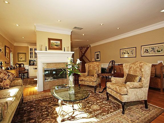 Here is premium quality! Stunning! A regal custom home that features spectacular city and mountain views, a third level perfect for a media room, and a detached recreation or guest house with a fireplace. Noteworthy features include Bay windows with granite, thick crown molding, wainscoting, dual sided fireplace, wet bar, polished hardwood floors with inlays, balconies, master bedroom with a sitting or study room, built-in buffet and entertainment center, over sized garage, security camera with telephone system, water fall and Koi pond and much more. Traditional appointments throughout.
