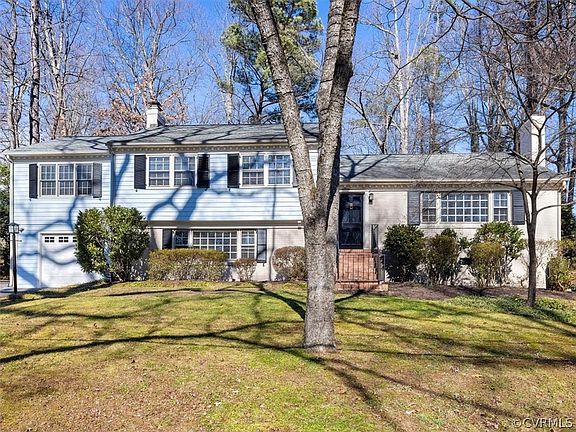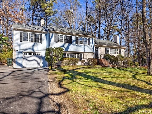 Spacious tri-level with four bedrooms and three and half bathrooms. Oak floors throughout most of the home. Living room with wood burning fireplace, dining room with French doors to enclosed porch, eat-in kitchen and large primary suite. Generous sized family room with gas fireplace and access to one car garage. Walking distance to Southampton Recreation Center with pool, tennis, ice skating, pickleball and playground. Public river access nearby at Pony Pasture and Huguenot Flatwater. Fireplaces, chimneys and flues convey 'as is'. Shed conveys 'as is'. Playset can convey.