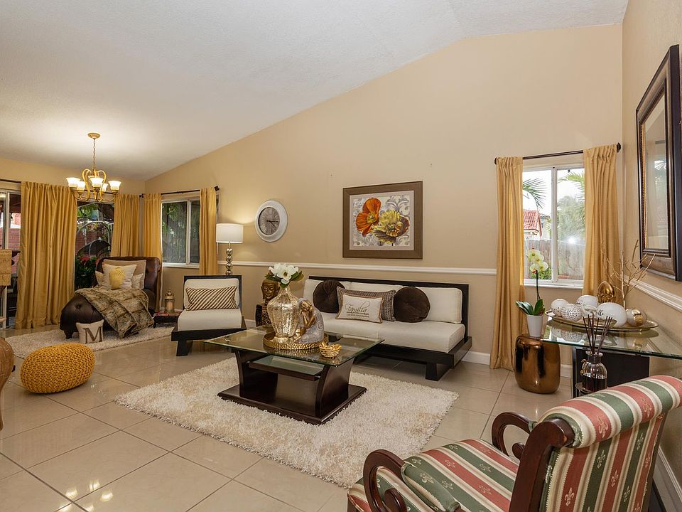 A true Gem! This impeccable ready to move in home is perfect for those who just want to move in and not have to worry about a single thing. It features three bedrooms, two baths, plus the double car garage converted to another room but, it could be easily converted back to a garage. This corner home offers a very ample terrace where you can relax and enjoy family gatherings. Great for entertaining. Great school area, shopping, supermarkets, etc. Low HOA. Show with confidence!