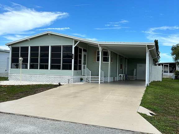 Welcome to Snug Harbor Lakes, a 55+ active community located by the Sebastian River. This 2002, 2 bedroom, 2 Bath, 1,246 sq foot home offers a 2021 Roof, 2018 AC, large rooms (check out the dimensions) and a relaxing large enclosed tiled front porch with double french doors leading to the living space. The kitchen is easy to work in with a new dishwasher, reverse osmosis system for drinking water, and lots of cabinets (white) and windows. The spacious dining room is off the kitchen with lots of light. The large main bedroom offers a bath with a walk-in shower and roman tub. The 2nd bath has a tub. The Laundry room comes with the W/D. The wide driveway fits 3 cars and offers a carport too. Oversized Utility Shed with AC. Includes irrigation well. Great home for seasonal or year-round living. Snug Harbor offers a clubhouse with a pool, tennis, billiards, and library. Monthy fee only $50.00. Land Owned.