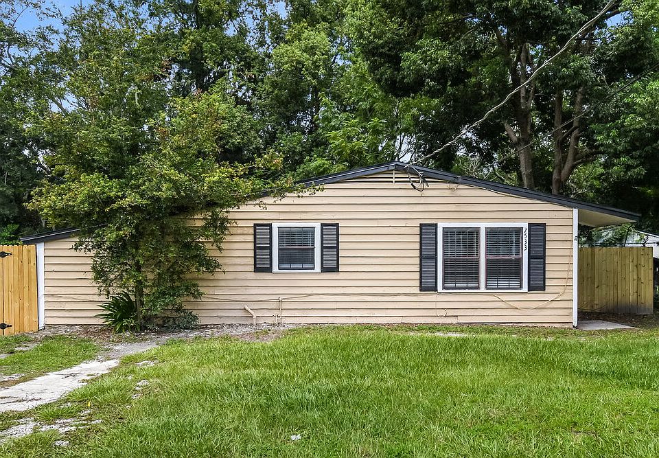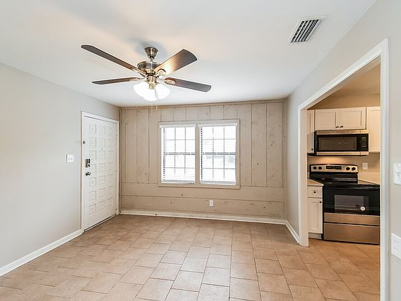 Please note, our homes are available on a first-come, first-serve basis and are not reserved until the lease is signed by all applicants and security deposits are collected. This home features Progress Smart Home - Progress Residential's smart home app, which allows you to control the home securely from any of your devices. Want to tour on your own? Click the "Self Tour" button on this home's RentProgress. This charming rental home in Jacksonville packs a lot into a small space. The home offers three bedrooms and one bathroom and feels bigger than its 1,045 square feet of space. You'll find tile flooring and a ceiling fan in the cozy living room. There's ample cabinet space in the kitchen, and a double sink makes cleanup after meals a breeze. A den area off of the kitchen has vaulted ceilings and tile floors and can act as an office, a second living room, or a recreation room. The three bedrooms are all good-sized, and some have vinyl plank flooring. The home also includes a laundry room and a fenced backyard with covered porch. Call today to schedule a private showing.