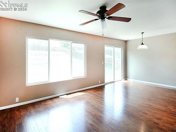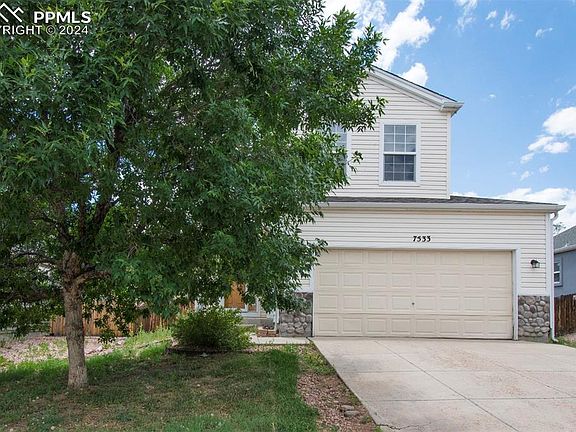 Wonderful 2 story home located just minutes to Fort Carson, nearby shopping and schools. Upon entry you are greeted with vaulted ceilings and wood laminate floors. The kitchen includes stainless steel appliances, a breakfast bar and an expansive pantry. The kitchen flows into the living room that includes a walk out to the fully fenced backyard that offers an ample amount of privacy. Also on the main level is a powder bath and a dedicated laundry room. Located on the upper level is the master that offers a walk in closet, an adjoining bath with a double vanity and a tub/shower combo. The full bath is conveniently located just steps from the secondary bedrooms that include plenty of natural light and walk-in closest. This house includes new carpet and is ready for move in!