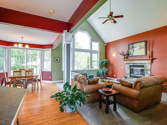 Welcome to this stunning, custom home built by Kraftech Homes with attention to detail throughout. Situated on 1 acre lot adjacent to the Cuyahoga Valley National Park-this is truly a prime location. Grand entrance with 2 story front porch & foyer. Great rm offers vaulted ceilings, fireplace w/stone accent & a wall of windows overlooking a private, picturesque back yard. Large, eat-in Kitchen features Kraftmaid hickory cabinets, wood flooring, center island & breakfast bar w/seating, glass tile backsplash & stainless steel appliances. Dining area is open to the hearth rm w/a two-sided fireplace connected to the morning rm that can be used as an office or den. Half bath, mud rm & 9ft ceilings complete the main level. Head to the second floor where you will find a loft, 2 guest bedrms that share an updated full bathrm & a primary bedrm w/vaulted ceilings, large walk-in closet & a full bathrm w/jetted tub, shower & a large vanity w/dual sinks. Laundry rm is also conveniently located on th