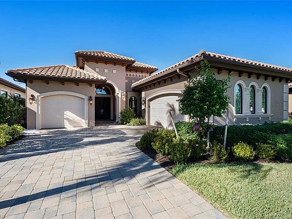H.597 - Enjoy spectacular day and evening views from this popular Jasmine II one story open floor plan home. Located on an over-sized lot this residence offers a private expansive lanai with a panoramic screen enclosure overlooking the golf course and lake with an illuminated water feature. The custom infinity edge, free form salt water pool features a sun shelf and has solar and electric heating. The stainless steel summer kitchen is perfect for outdoor entertaining. This custom property has over $250K in premiums and upgrades. The Chef's Kitchen includes GE Monogram appliances with an Advantium convection speed oven, warming drawer, induction cook top, upgraded pantry and wine cooler. There is hardwood flooring in all bedrooms and 24" tile on the diagonal in the other living areas. The formal dining room is currently being used as a home office. All windows and doors are impact resistant. Additionally, there are electric storm curtains on the lanai. Golf is optional at Olde Cypress.