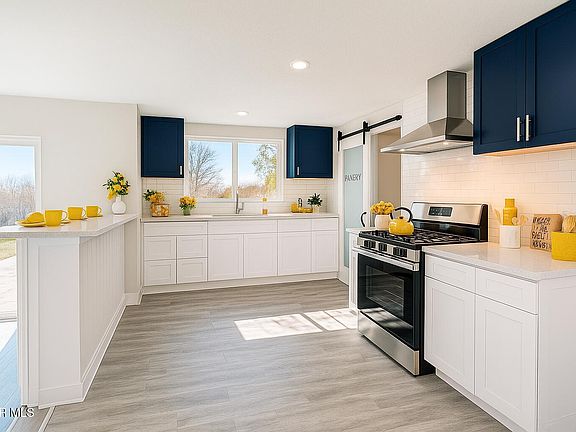Contemporary lightingBrand new gas stoveFresh interior paintNew flooringTwo living spacesQuartz countertopsOpen-concept kitchen