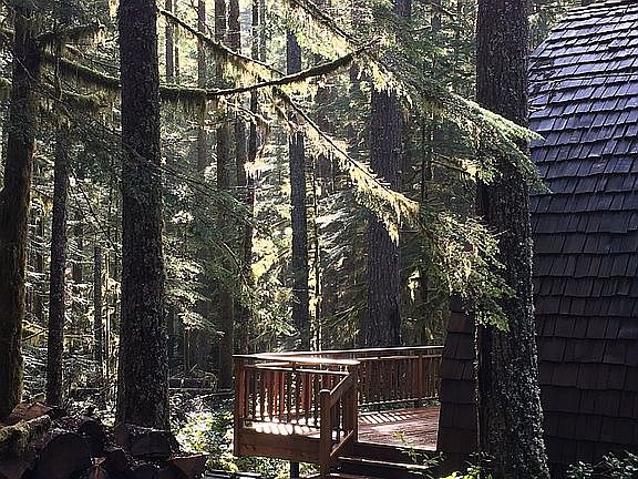 This unique arched "A-frame" 2 story cabin was completely renovated in 2017-2018 and located just 8 miles west of Government Camp. Upstairs contains a large dorm with two queen beds, a private bedroom with one queen bed, and a full bath with glass, porcelain tile and stone shower. The Delta True Temp shower hardware and tankless water heater makes for hours of hot showers while enjoying the view or catching snowflakes from the shower's wood awning window. A small balcony off the upstairs dorm room adds a viewpoint and snowball launch zone. The dorm room has one lodgepole bed and one stump bed all handmade on location with wood from the property. There is a locking "owners closet" upstairs with crawl access only (right side of upstairs bathroom). Downstairs, you'll find all true, thick, leather Pottery Barn furniture including a full size sofa, loveseat and two full size distressed leather chairs. Hand peeled stumps for living-room end-tables are all from downed trees off the property. An excellent efficient Quadra-Heat wood stove with built-in fan resides in the living-room as well. A 9' long solid reclaimed pine table, bench and chairs under a custom hand-made, reclaimed wood chandelier seats up to 10 in the dining area. In the kitchen, you'll find a second fireplace at waist height that is great for indoor cooking. Next to the fireplace is a large island with undercounter Summit fridge/freezer and storage. The kitchen has its own tankless water heater, concrete countertop, propane stove, electric convection oven/microwave, single drawer dishwasher and a large copper sink. The downstairs full bath has a solid volcanic limestone soaker tub beneath a custom wood awning window. The bath vanity has a copper bowl sink on a concrete countertop with drawers and storage. A recovered horse drawn wagon bridal holds the lighting surrounding the mirror. Wrapping up the downstairs is a larger lockable "owners closet" tucked behind the leather wrapped spiral staircase. The lights in or on this structure are LEDs and most are dimmable. All windows are new handmade vertical hemlock mortise and tenon replicas of the original wood windows. We added wood screens on the windows that open and a wood sash glass door to the upstairs exterior balcony. Front and rear lower cedar decks are in excellent condition. All exterior non-painted wood is oiled each year. We have rented this cabin on AirBnB.... but only to cover costs. https://www.airbnb.com/rooms/40975401?s=67&unique_share_id=baf48ff5-5cf9-47f1-9e60-c8ab9b43d189 We have owned this cabin for nearly 4 years and we rent it for $349 a night. Most recently, we rented this cabin to a couple for one night on Airbnb. The guests paid a total of $430.68 and submitted an excellent review and a five star rating. This cabin is located in the Mt Hood National Forest on leased land. The price is for the new woodshed, restored cabin and all interior furnishings (as-shown). Contact the ZigZag Ranger Station (Greg Martin) for details regarding the lease of the property the cabin is built on. This cabin was invited to be listed on the National Historic Registry and deemed a valuable historic structure on the Barlow Trail. Realtors: 1.5% commission