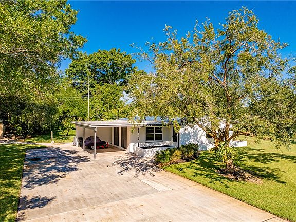 Charming 2-bed, 1-bath home on nearly half an acre (.45±) in quiet non-HOA neighborhood! Sturdy concrete block construction, metal roof, & freshly painted exterior. Features living room, family room or possible 3rd bedroom, galley kitchen, & dining area. Spacious 15'x13' utility room for laundry, storage, or possible 2nd bathroom. The spacious yard is equipped with a covered carport w/storage, irrigation, shed, & paver sitting area, ample space for gardening, toys, or outdoor living. HWH 2024, AC 2019, Well 2020, & drain field 2015. Located close to Sandridge Golf Course. rmszappr&subtoerr