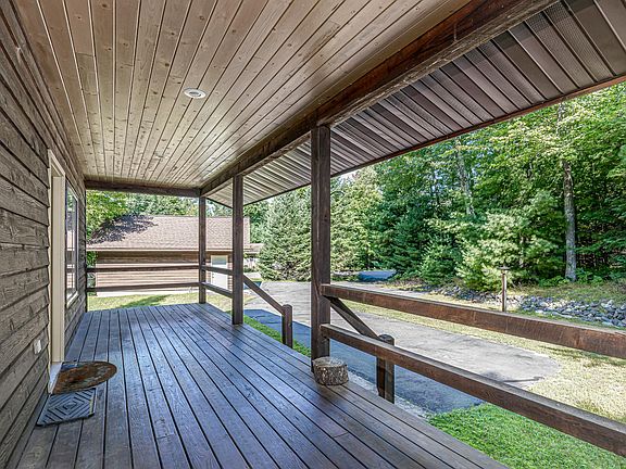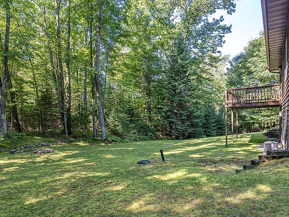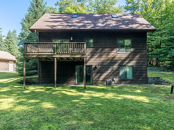 Charming 3 bedroom, 2 full bath, 1.5-story home set on just over an acre in a peaceful, private setting. Enjoy wooded views while still being conveniently close to town and local amenities. Inside, the cathedral knotty pine ceilings create a warm and inviting atmosphere. The upper level offers a loft overlooking the main living area along with an additional bedroom. The walkout lower level features a private bedroom suite, family room, and utility/laundry area, providing both comfort and functionality. Relax on the oversized covered front porch or take advantage of the blacktop driveway leading to a spacious 2-car detached garage. Surrounded by many popular full recreation lakes, this property is an excellent choice for a year-round residence or a cozy Northwoods getaway cabin.