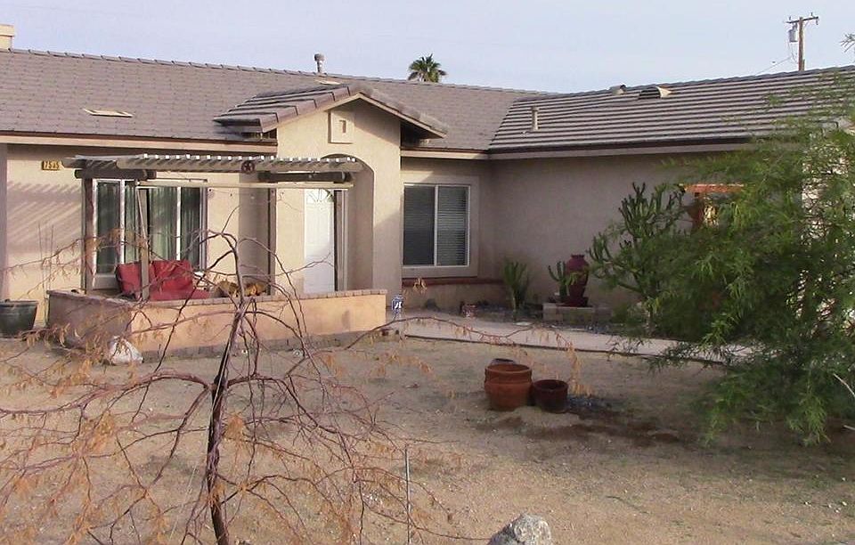 Charming 4 bedroom home nestled in the hills overlooking the high desert. The open concept design features a spacious kitchen, dining, and living area with high ceilings. Sliding doors lead to a covered patio, ideal for entertaining. The fenced open backyard is a blank canvas for your outdoor living dreams. Master bedroom and bath offers a walk in closet, dual sinks, step down tub, and separate shower. Property includes a walk-in shed and RV parking. Close to Twentynine Palms Marine Corps Base and Tortoise Rock Casino. Bring your buyers or investors. Tenant occupied with lease to June 2019.