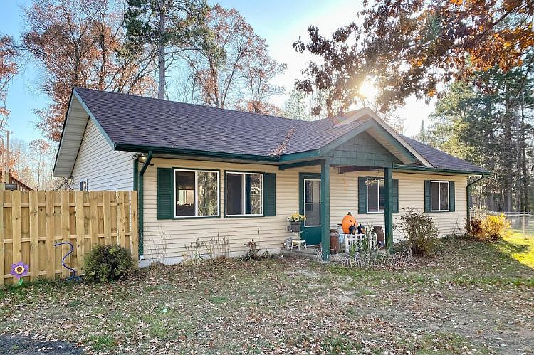 ONE-LEVEL LIVING ON 2.5 ACRES! This charming patio home features three bedrooms, full bathroom, open concept living-dining-kitchen and laundry all on main level. Wide doorways and hallway offer accessibility. Fenced-in back yard for your pets. Gorgeous pond area surrounded by perennials showcases the 2.5-acre corner lot. Two-story 18x20 garage building exterior will be completed before closing. Guest room loft and screened-in porch above the garage are the nature lovers retreat!