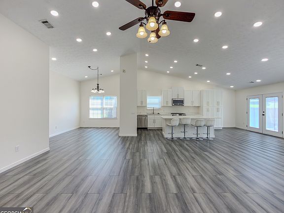Welcome to your next home 4 spacious bedrooms, 2 fully renovated bathrooms, and freshly painted interiors, all on one accessible level. Natural light streams through high ceilings and recessed lighting, illuminating the inviting openconcept layout that flows seamlessly between the kitchen and living room. A separate formal dining area with flexibility and elegance. The kitchen impresses with crisp white cabinetry, granite countertops, stainless steel appliances, and a generously sized island ideal for hosting friends or aiding casual meal prep. Step outside to a sizeable backyard, perfect for cookouts, play, and relaxation. Retreat to the luxurious primary suite featuring a completely redone bathroom with a remodeled, tiled walk-in shower framed by sleek, frameless glass doors. The hall bath shines with equally modern finishes. With everything on a single floor, this home offers effortless accessibility. Whether indoors or out, there's abundant space for entertaining and everyday comfort.