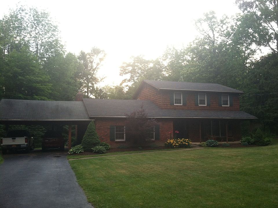 Move right in to this modern & updated 4 bed/1.5 bath home sitting on over 2 acres. Perfect location w/in the Orchard Park/Boston border that is on municipal water & sewer. This open floorplan has all of the "I wants" including newer roof (2 years), boiler (2007),renovated 1st floor Master Bedroom (with beamed ceiling, his and her closets & sliding barnwood doors), updated bathrooms & kitchen, 3 good sized bedrooms (one with double closet), formal Dining Room, first floor laundry/mudroom & sliding doors to the deck. The basement has separate utility & storage areas and can easily be finished. The best part is the outdoor space - a front porch, covered carport with storage, stamped concrete walkway to the back deck overlooking the yard, chicken coop & shed. Plus close to Chestnut Ridge Park