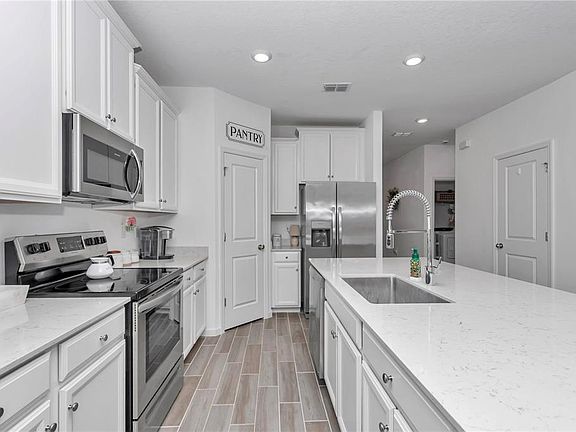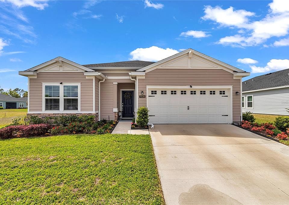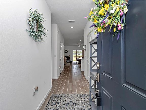 This beautiful home exudes style and comfort, perfect for those seeking a blend of elegance and functionality. Upon entering, you're greeted by white 42" cabinets with crown molding, complemented by quartz countertops and an island, creating an ideal space for entertaining guests. Transition seamlessly through the rolling wall to the covered, screened lanai, offering a serene retreat. This single-story home features a spacious open design that maximizes the interior footprint. The gathering room, kitchen, and nook seamlessly flow, leading to a covered lanai for indoor-outdoor living. The Guest Bedroom is situated off t flow into each he foyer, while the owner’s suite is located toward the back for privacy. The study provides a flexible spot for an office or craft/hobby room. Be part of a NEW masterplan community for residents aged 55 and better. Located in a growing prime location with one-of-a-kind homes and proximity to medical facilities, shopping, dining, and more! Conveniently located near restaurants and shopping, and just fifteen minutes from the prestigious World Equestrian Center and Shalom Park. This home offers a lifestyle of convenience and luxury in a vibrant community setting. YOUR NEXT CHAPTER STARTS HERE! THE 3RD BEDROOM IS SHOWN AS THE DEN OPTION WITH NO CLOSET.