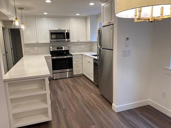 - Stainless steel appliances including an over-range microwave, dishwasher and garbage disposal.